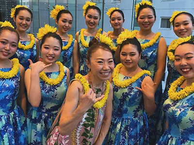 またハワイ校の生徒としてもハワイでショーやコンペティションで、優勝・入賞を果たし、ショーチ ームは本格的なフラと洗練されたショーを行うプロダンサーROCK A HULA GIRLSとして活躍中。